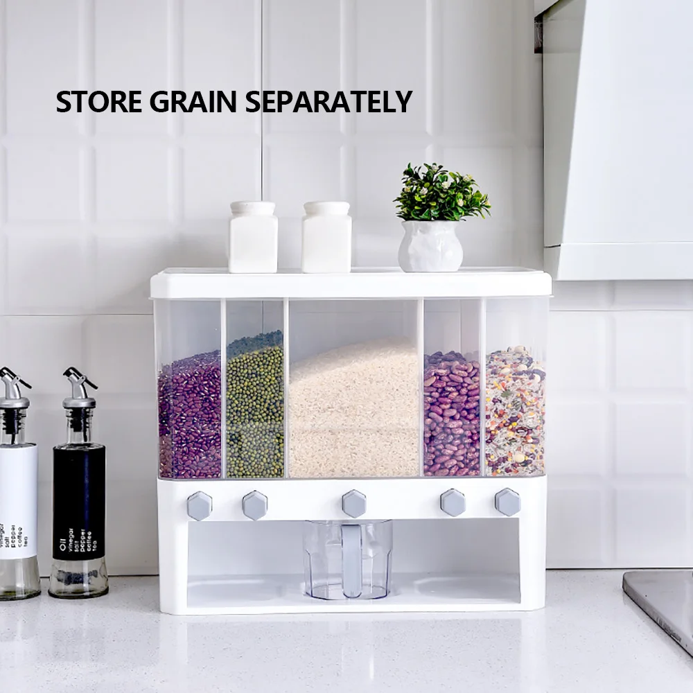 Dry Food Dispenser 5-Grid Cereal Dispensers Food Storage Container Kitchen
